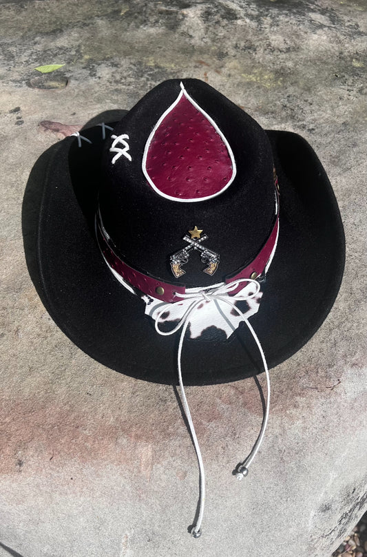 Men’s Distressed Black Hat, Bullet Band comes in leather also. Has leather topper.