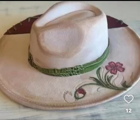 Beige/Red leather Burn Flower Hat