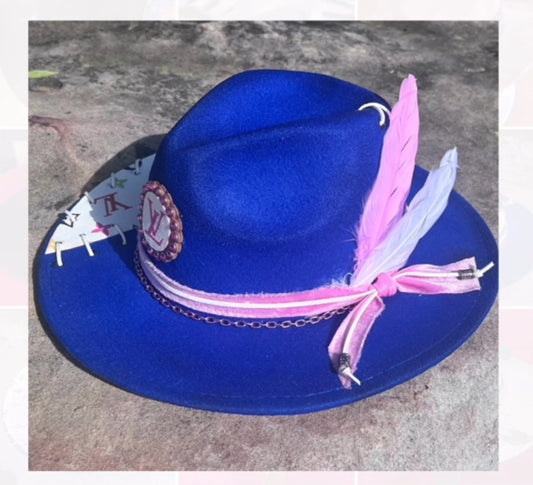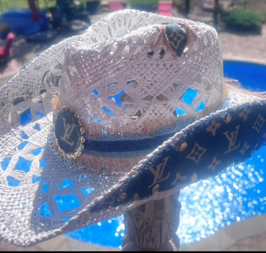 Blue Louis Vuitton repurposed hat